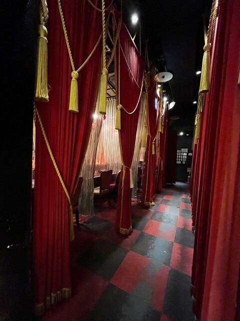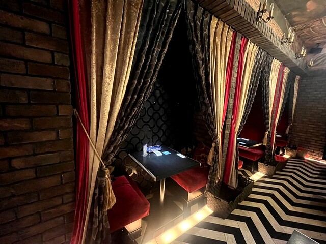 赤と黒を基調としたゴージャスな店内はデートにも最適