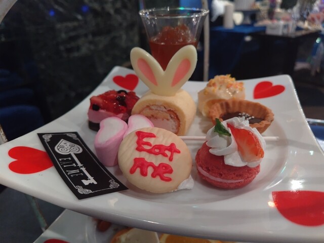 大きな絵本の扉を開くとそこはハートの女王が支配する古城。アリスの物語を表現し目でも楽しめる可愛いメニューに注目。