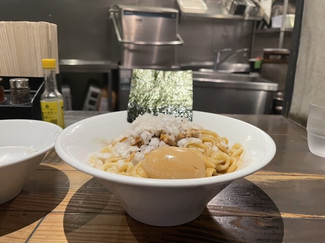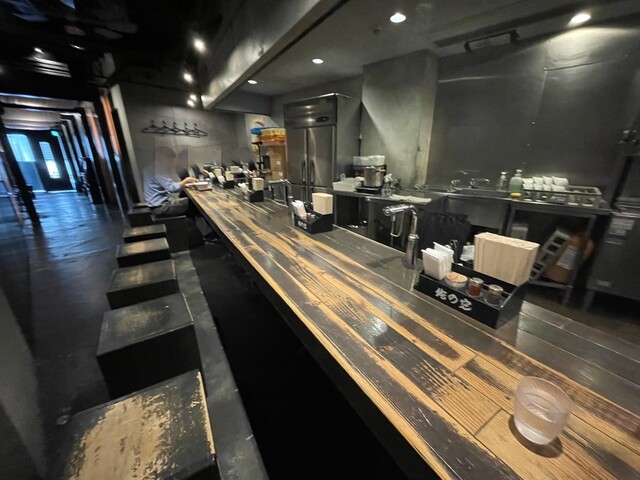 19時半ごろに訪問。 場所は知っていたが初訪問。 想定していたお店と違いびっくり。 入口からおしゃれで廊下のような通路の奥に広々としたフロアが展開されている。 カウンターだけだがめちゃくちゃ広い。 最近入ったお店の中ではダントツの広さ。 食券機で購入。あえめん大盛880円税込み。 大盛... 詳細を見る