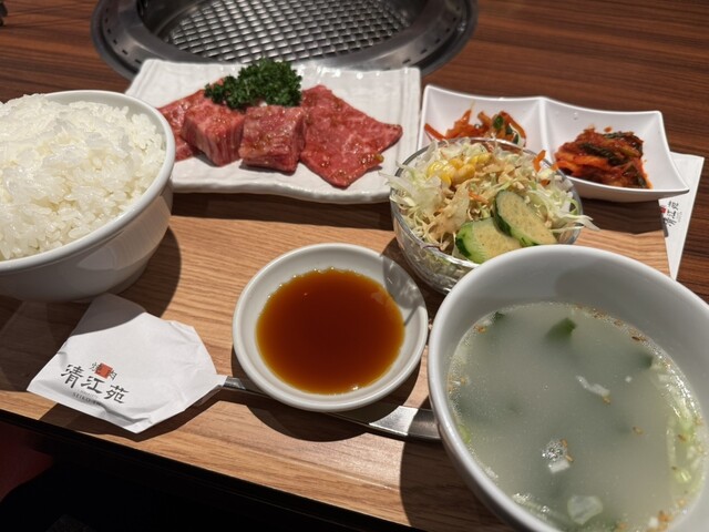 ランチ時間に焼肉が食べたくて、昼に営業しているといえば、老舗 清江苑 黒毛和牛の店でありながら、ランチはリーズナブルなメニュー。