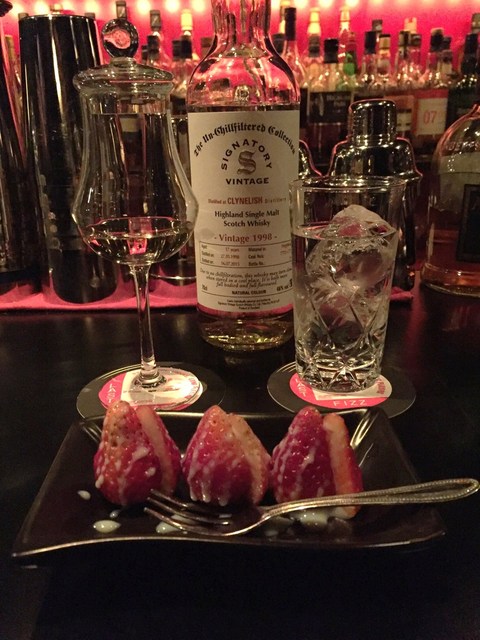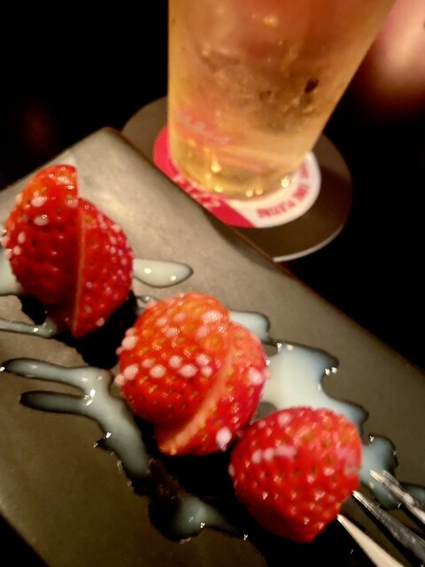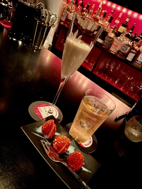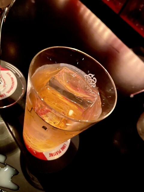 ウイスキーロックとカクテル、黒いフィズをお願いしました。ロックはダイヤモンドカットが浮かんでます。黒いフィズは炭ですかね。...