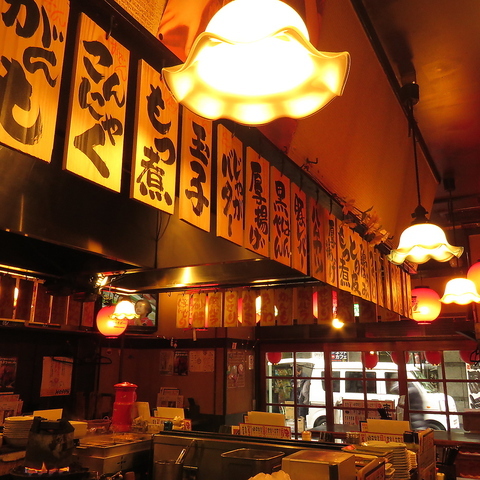 炭火焼き鳥、焼きとん、関東風おでん、もつ煮。昼からサクッと一杯どうぞ。女性のお一人様でも気軽に立ち寄れるフランクな雰囲気です。テーブル席もあります。