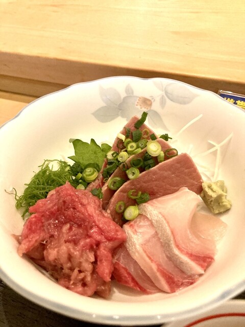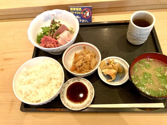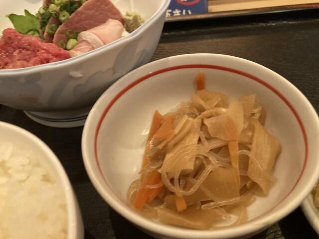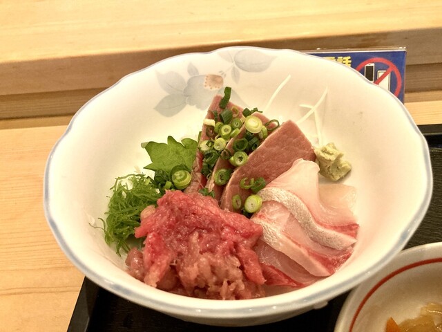 中トロ定食2000円をオーダーしました 刺身の中トロは腹4、背3の7切れが乗っており、定食は刺身にご飯、小鉢、漬物、味噌汁が付きます この日は、本鮪の幼魚である佐度沖メジマグロ10kgが提供されました 相変わらず盛りが良いです、ご飯は普通でもドンッと盛られています(味噌汁はお代わり可能、もちろ... 詳細を見る
