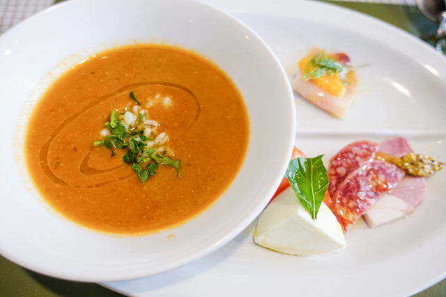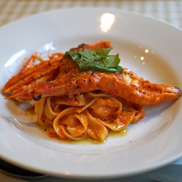平日11時20分頃訪問 11時半オープンで、先客2組程。 1〜3組目までが2Fに着席。 お昼はランチ2500円で前菜、フォカッチャ、パスタ、デザート3種盛り、珈琲か紅茶。 パスタは選べます。 本日のパスタ、カラスミのパスタ、蟹クリーム、ラザニアから選べたので、蟹クリームを選びました... 詳細を見る