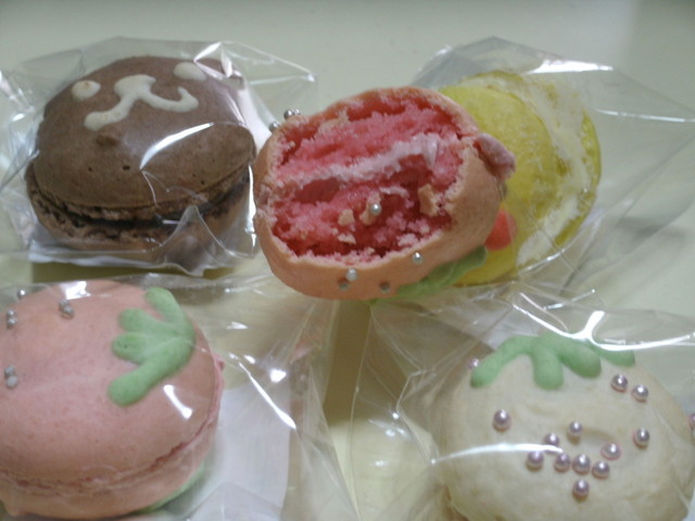 ただのマカロンではありません。クマちゃんとイチゴの形をしてます。