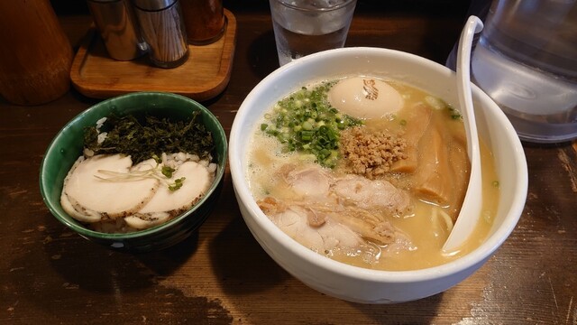 土曜の14時頃、2〜3組の並びを待って入店。 夏の暑さにやられて、さっぱりしたいなと つけ麺をポチ。 でも、店内は冷房キンキンだったのでラーメンでも美味しく食べられそうでした... 詳細を見る