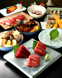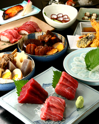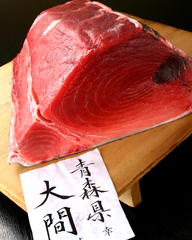 ★青森県大間産(生)本まぐろ料理 東京中央卸売市場にある「鮪の達人・やま幸」より日本近海の黒鮪を一度も冷凍せずに(生)の状態で仕入れて提供しております。産地は季節により変動し、春~夏にかけては長崎や鹿児島の南寄りが多く、秋~冬には青森や北海道、東北寄りの水揚げと成ります。又、日本海側の黒鮪と太平洋側の黒鮪には、海流や食べている魚等によって身の締り、脂や味等に違いがあります。