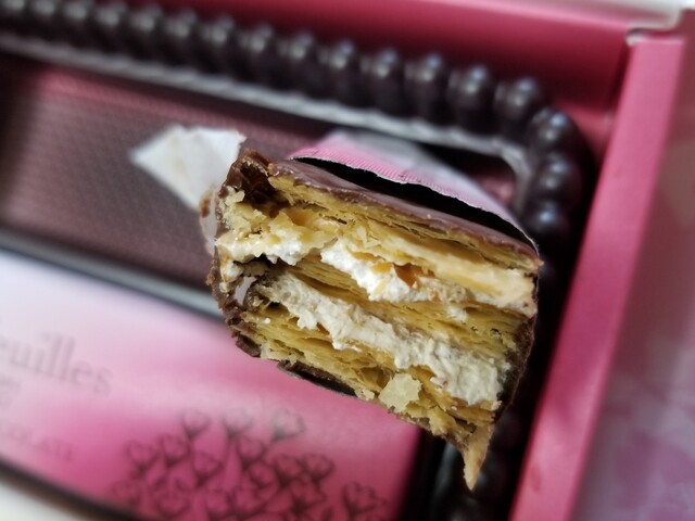 今回はベルンのミルフィユ(ヘーゼルナッツチョコレート)を購入しました。香ばしく焼き上げた3層のパイ生地にに3種の異な...