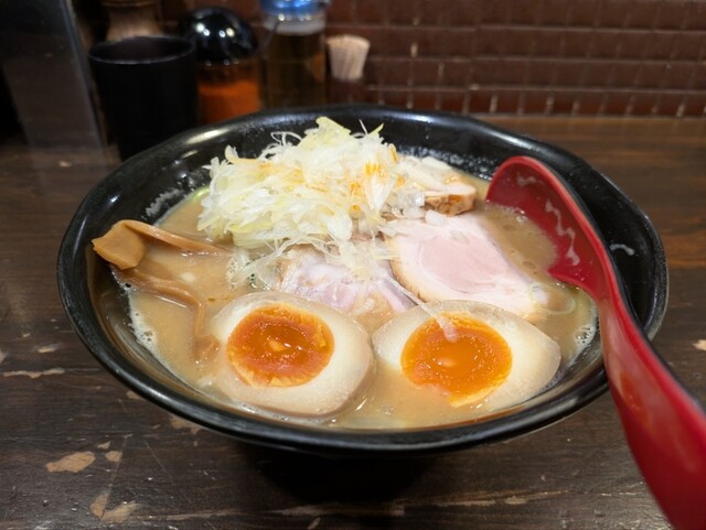 味噌 1050円 再訪です。 平日の昼頃に伺いましたが、安定の行列。いつ行っても並んでる人気店ですね。前の待ちは10数名程度で、結果店内に入るまでに30分ほど待ちました。 では、味の感想をざっくりと記していきます。 前回頂いた時とほとんど味の感想は変わりませんね。濃厚でトロトロな味噌... 詳細を見る