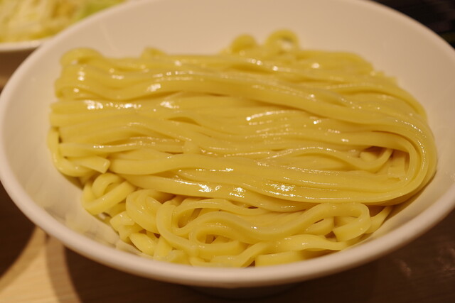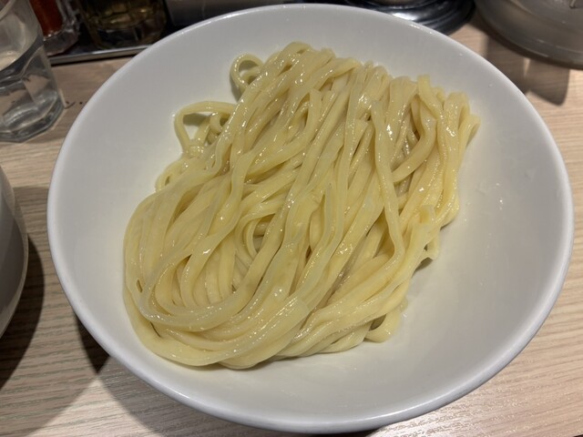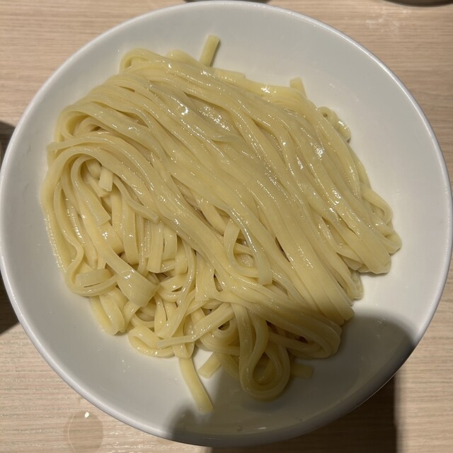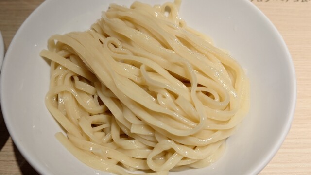 つけめんライトは、まず平打ちで軽やかな食べやすさなのに、舌に吸い付くようなしっとり感も兼ね備えたこの麺がめちゃくちゃ美味しい。ポップ...
