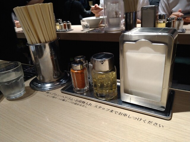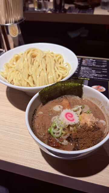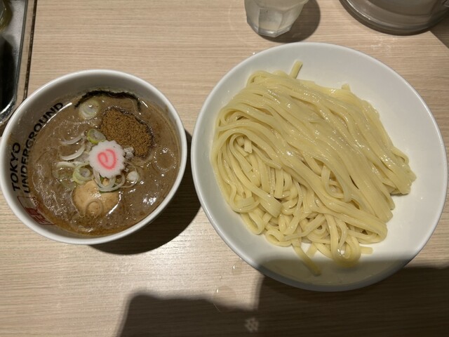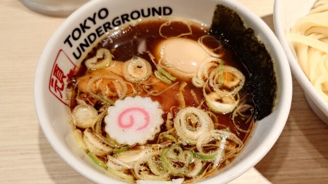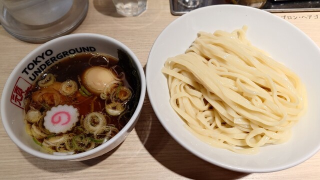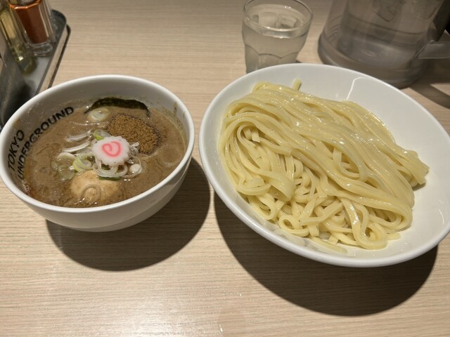 池袋駅西口の地下から直結の東武ホープセンターの飲食店エリアに出てくるつけ麺屋さん。前時代を携えたような少しシャビィな通りに出てくるバラエティ溢れる飲食店街。それぞれに光る個性に違わず、少しシックな空気感で作り込まれた店内が印象的。