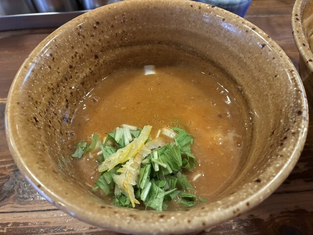 魚介と豚骨の旨みを凝縮した濃厚スープは、野菜の甘みととろみが合わさったまろやかな口当たり。刻み玉ねぎや水菜、ゆずがアクセントになっており、重たさを感じさせないすっきりとした後味に仕上がっています。