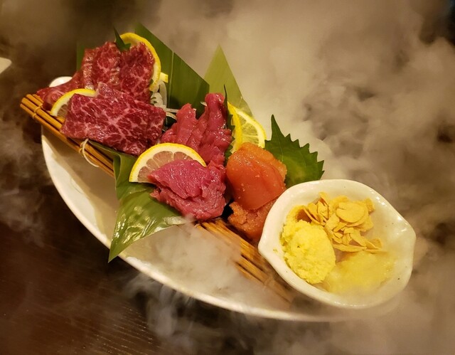 「あたごさば」や「馬刺し」などの九州料理を焼酎とともに堪能