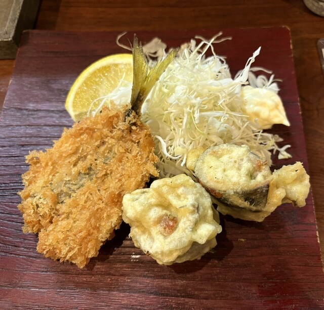 この日はマスターが釣ってきたというアジがメインに並ぶ日。 釣りたてふわふわのアジフライが食べたいと思って訪問。なめろうには生姜、茗荷などの薬味がふんだんに使われていて、お酒のアテ... 詳細を見る