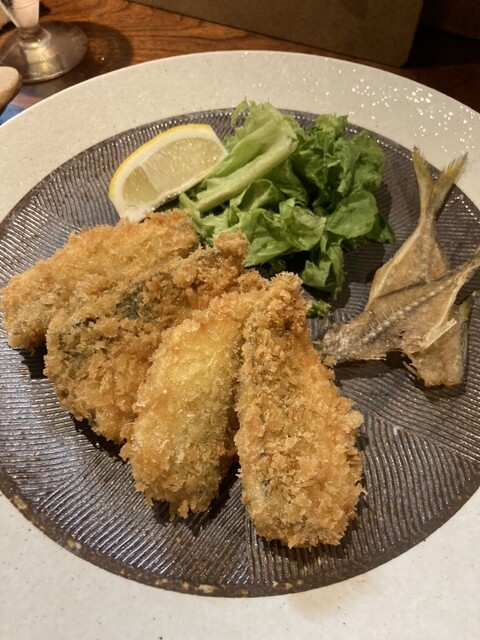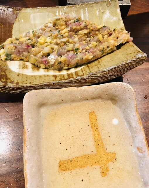 釣りたてふわふわのアジフライが食べたいと思って訪問。なめろうには生姜、茗荷などの薬味がふんだんに使われていて、お酒のアテに最高でした。