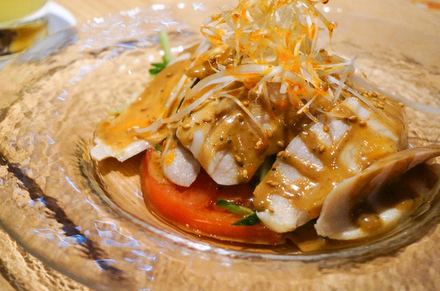 宴会で伺ったので写真を撮るつもりはなかったのですが、こちらの鶏肉が見た目が良すぎたのでパシャリ…