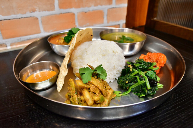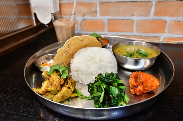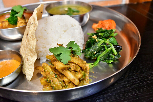 入った瞬間にスタッフと目が合い、ご挨拶と同時に席に通されました。カウンター席です。とっても感じいいお店ですね〜、それだけで来た甲斐ありますね。 ◯ダルバート ホットチャイ付き 1200円 ネパール人シェフが料理している店なのに、なぜかインドや東南アジア料理、さらにはオムライスにタ... 詳細を見る