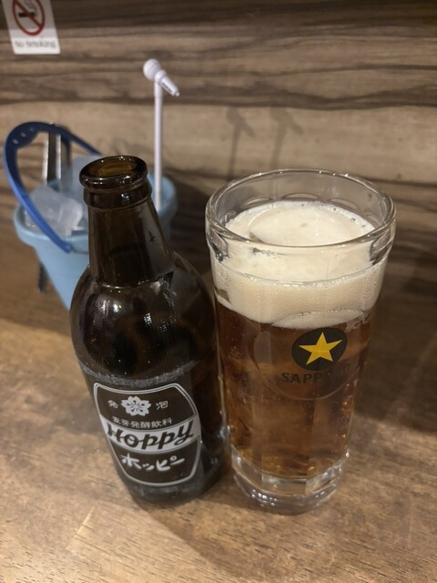 ホッピーセット白で乾杯〜♪ ✔︎コーンバター ✔︎ウインナー ✔︎エイヒレ ✔︎天ぷら盛り合わせ ✔︎もりそば ココ、そば屋さんなんだけど居酒屋つかいが出来て良... 詳細を見る