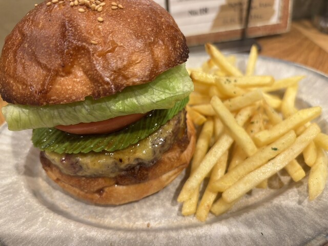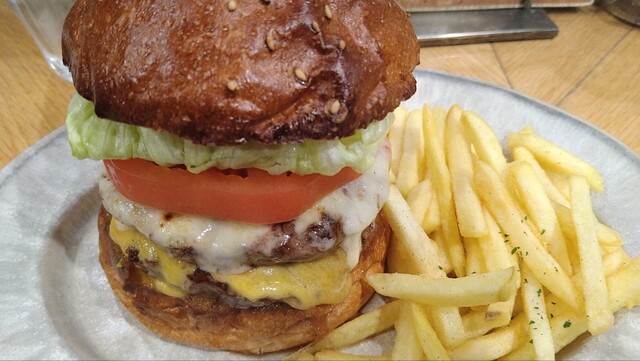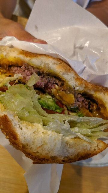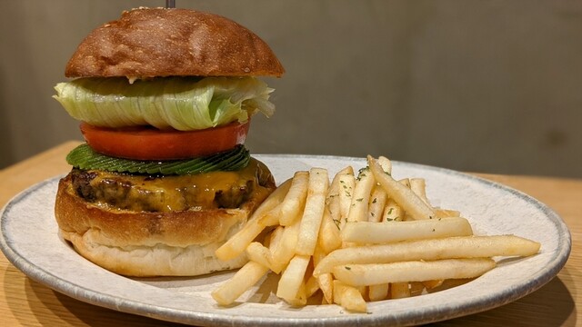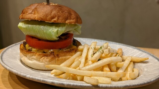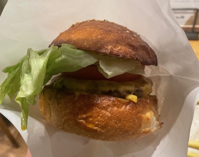 パティがジューシーで、バンズとのバランスがいい。最後まで美味しく食べられる王道ハンバーガー。