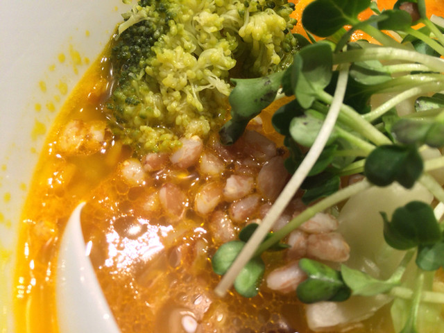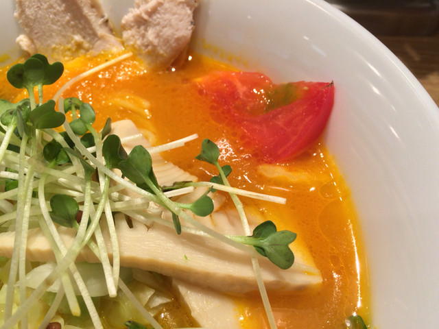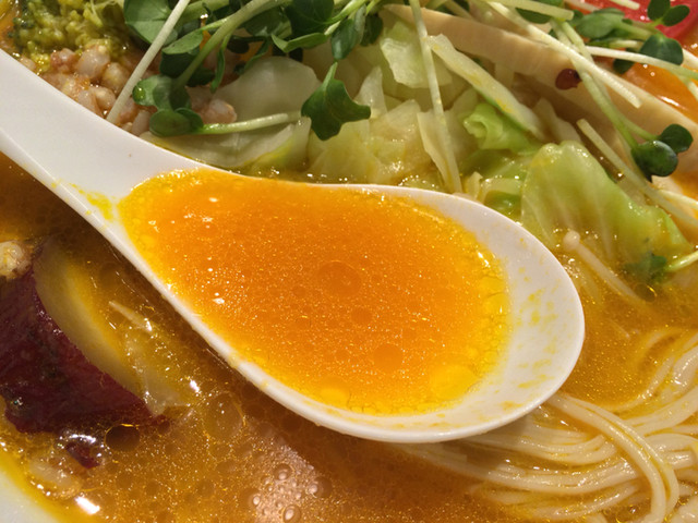 スープは鶏ベースにニンジン一本分をブレンドしたベジスープ。
