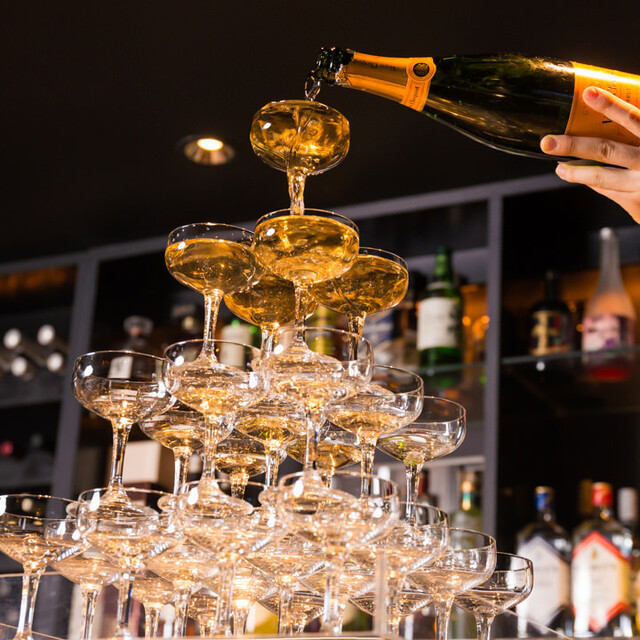 お祝いや記念日等、様々なパーティーに最適な【RAS】。2時間の飲み放題付きコースは3,500円~ご用意しております!ビールやカクテルなどのドリンクも豊富に取り揃えました。全40席の店内には、大型モニターやカラオケ、ダーツなどの様々な設備を完備。もちろん貸切もでき、10名様以上のご予約で『シャンパンタワー』などの豪華特典がございます!専属スタッフによる徹底サポートもあり、結婚式の二次会にも最適です◎