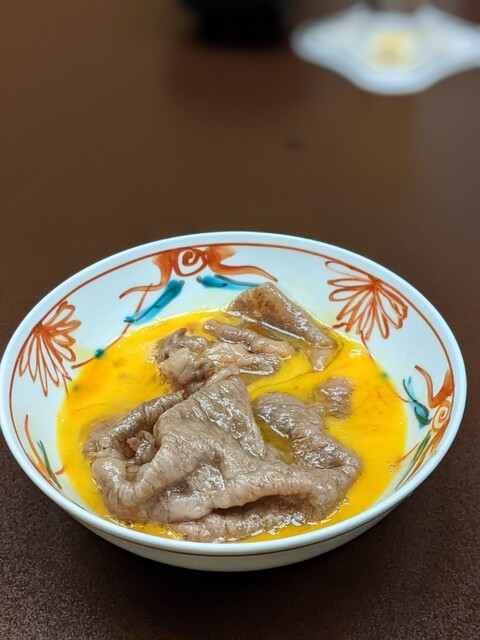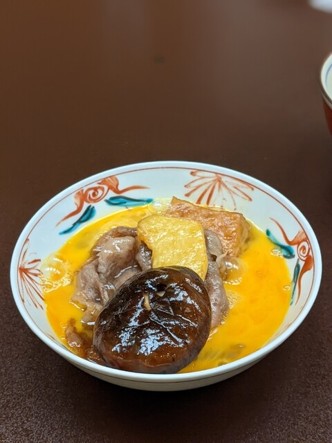 こちらにもたっぷり松茸入ります。霜降り肉を先ず割下で焼き炒め溶き卵でパクリ。脂甘め柔ら...
