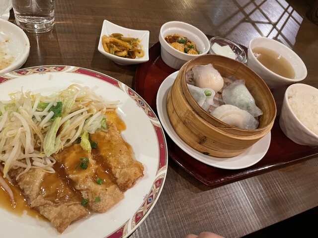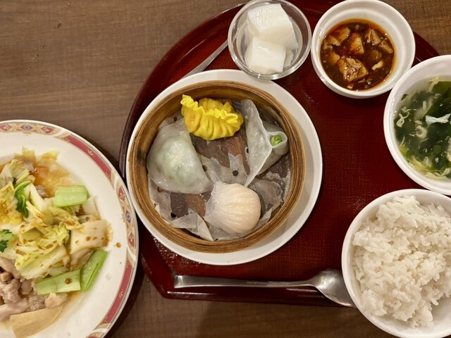 知音食堂のお隣のお店です。 外にランチメニューの看板が出ており、点心ランチに惹かれて入りましたが、どの点心ランチにしようか迷い、店員さんにオススメを聞いてみました。中国人の店員さんがオススメしてくださった、点心ランチCを注文しました。 蒸し物が鶏肉の炒め物で、この味つけが好みでした。椎茸の旨味がすごくて感動しました! 点心はエビ蒸し餃子、蝦入りニラ餃子、フカヒレ餃子、大葉とイカの餃子... 詳細を見る