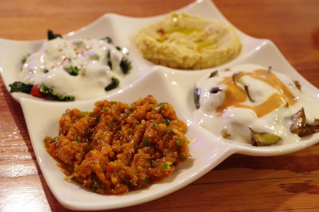 ケバブ屋、なめたらいかんぜよ!(古い)。 身近にあったコスパ良きトルコレストラン。 私はビギナーなので、 メゼがあれば飛び付きます。 既に一軒めで普通に飲んで来ました。 とりあえずメゼ4種盛りにエキメッキ。 アジルエズメ、唐辛子が効いてホット。 揚げナスのヨーグルトソース、サッ... 詳細を見る