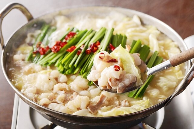 国産牛ホルモン使用の絶品もつ鍋は季節限定にて! (by お店)