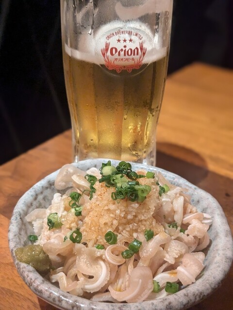 飲み放題+アラカルトでの注文スタイルで、ビールで乾杯。銘柄はサントリー生みたいでした。しっかり冷えてましたしスーっと飲みやすい口当たりもよかったです。