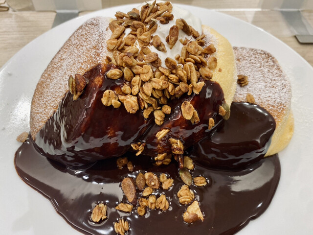 チョコレートの美味しい甘味とパンケーキがマッチしています✨