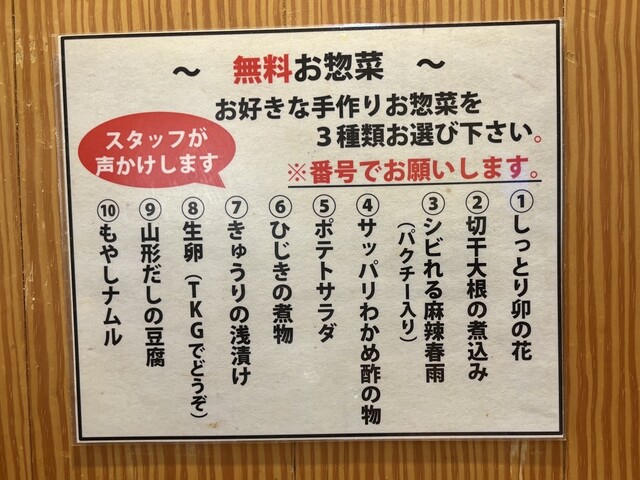 千円くらいで付け合わせを3品も選ぶことができるのはとてもコスパが良い。