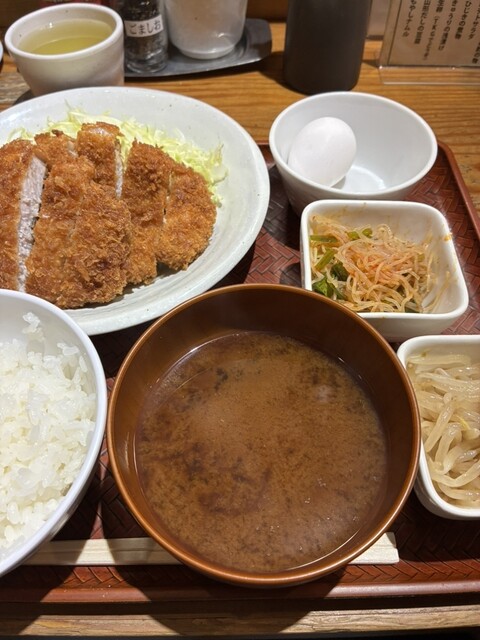 ・1000円でロースカツ、ごはん(大中小)、しじみの味噌汁、選べる小鉢3つが付くのはコスパ○