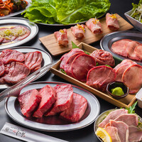 自慢の牛タンや極上肉に加え”厚切り”や”薄切り”も贅沢に堪能できます。 ※ドリンクの飲み放題コースを当日お選びください。 ソフトドリンク飲み放題又は、アルコール飲み放題を必ずつけていただく形になっています。3種類の飲み放題から当日お選びください。