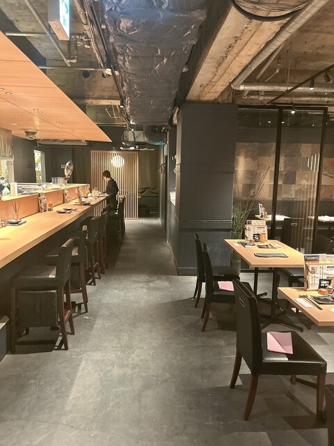 個室6部屋、カウンター席16席からなるおしゃれな空間でお食事を楽しめます。メインのL字のカウンター席はライブも楽しめる特等席...