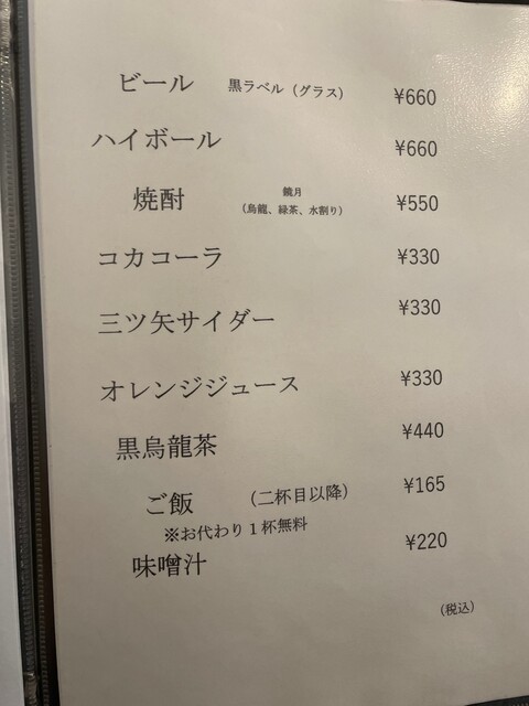 ドリンクメニュー
