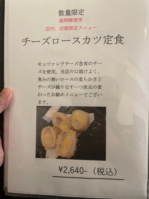 数量限定 チーズロースカツ定食