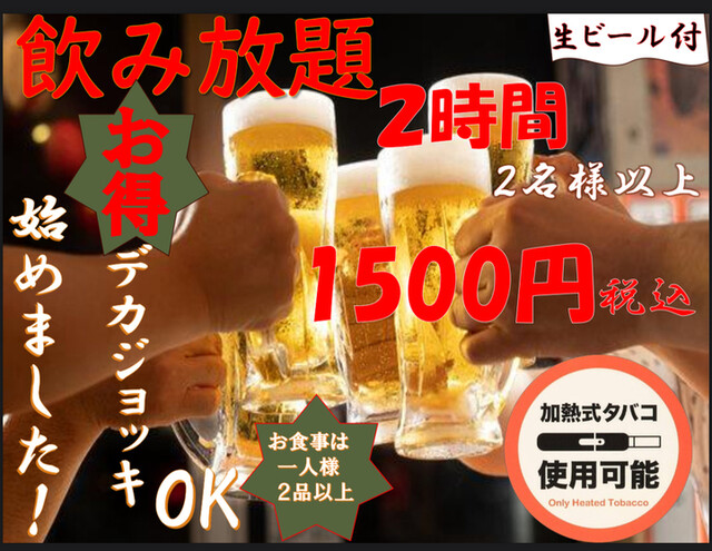 | ドリンク | 日本酒あり、焼酎あり、ワインあり、カクテルあり |
