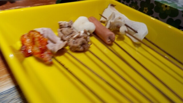 一本39円の串刺しの具を辛い火鍋に入れて食べる四川串串店本場のスタイル。