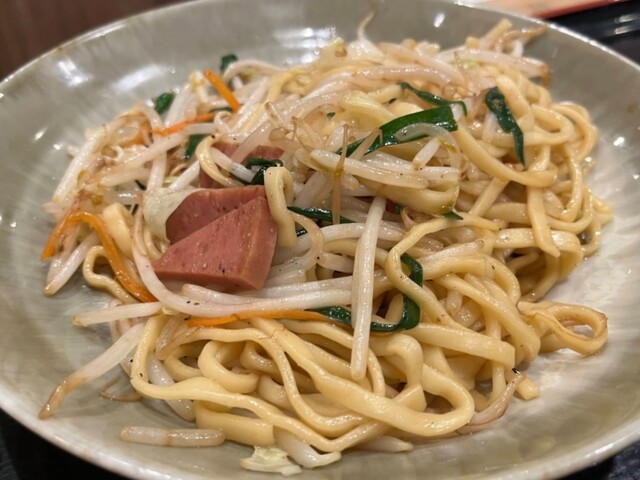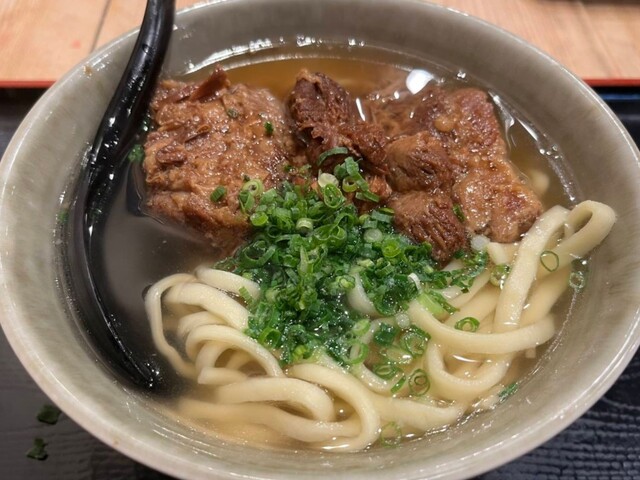 沖縄料理の店、1階は沖縄そば(セルフサービス) 2階は沖縄食堂(居酒屋)と表示している。 1階入口のメニュー看板にはソーキそば等お馴染み の麺類が並び、一番上に "沖縄そば"... 詳細を見る