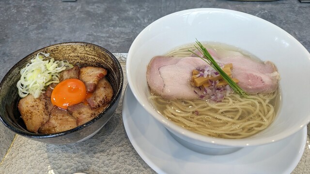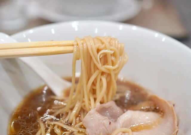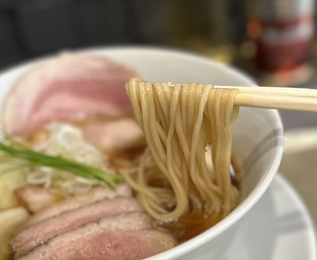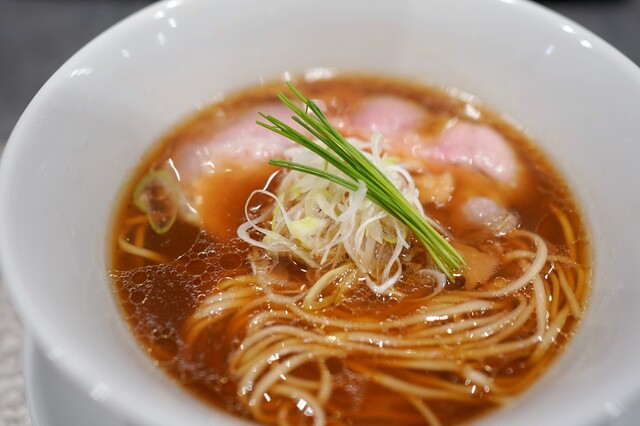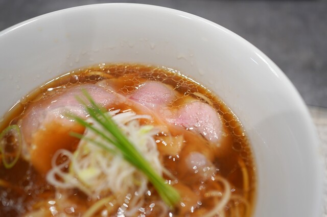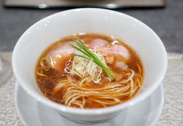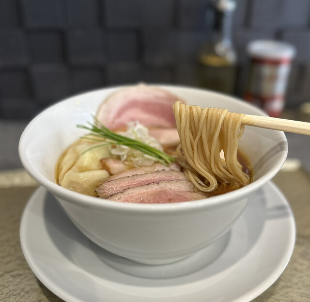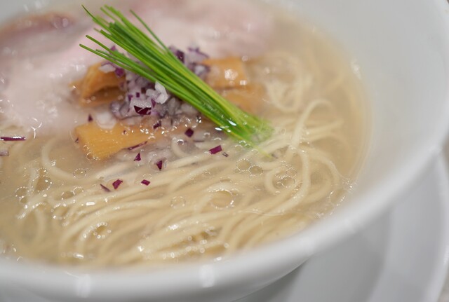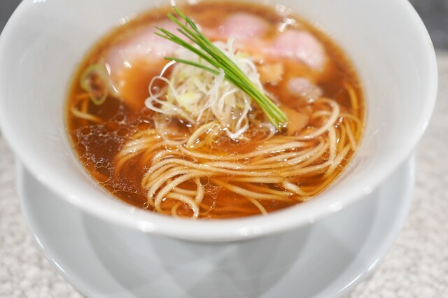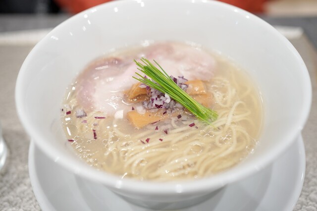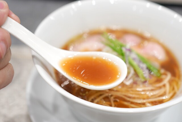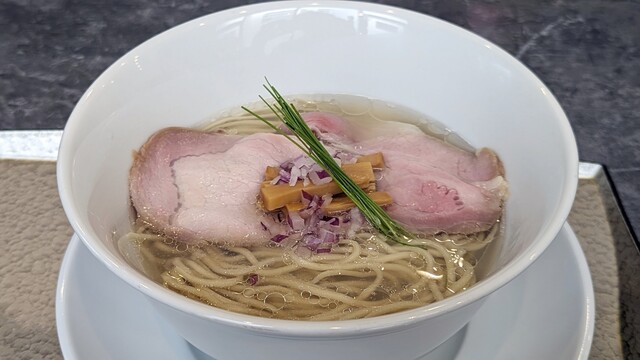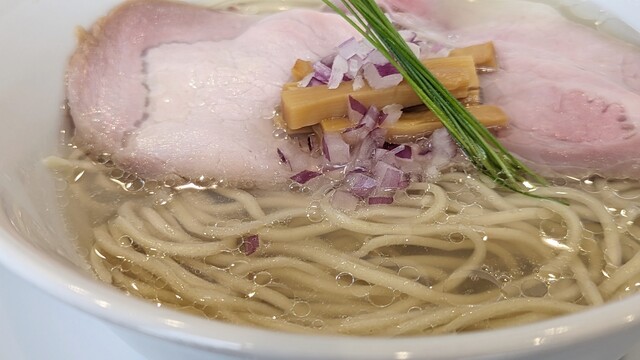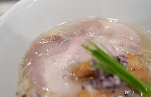 まずは中華蕎麦〈塩〉から。名前の通り美しい琥珀色...