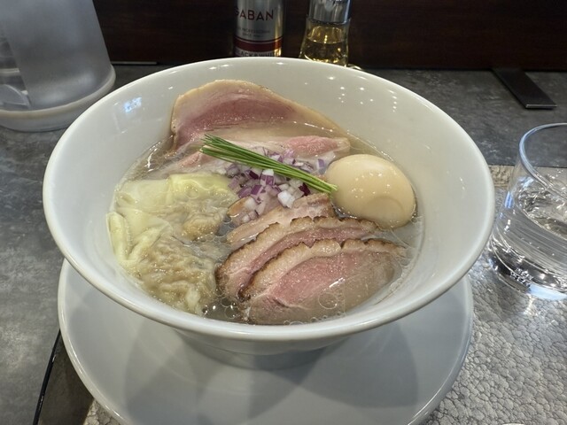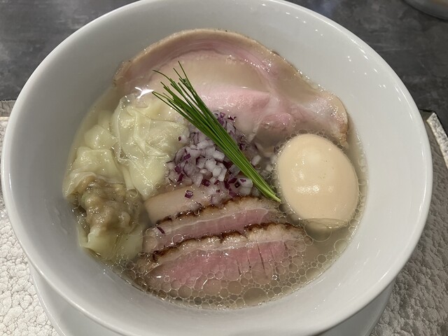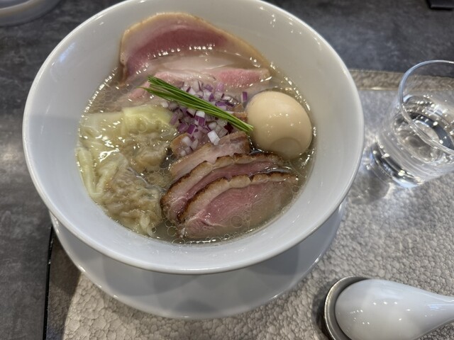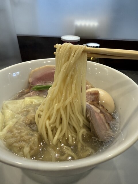 土曜日22時に並ばずに入店。既に醤油ラーメンは売り切れで塩ラーメンにワンタンをトッピングして注文。しじみの香りを少し感じながらスッキリとした濃いめの塩味。麺はちゃんとスープに絡んで茹で加減も良い。チャ...