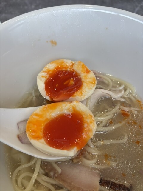 卵が絶妙にうまい。よく透き通った高級感あふれるスープはくどくないがあっさり濃いめ。しじみの風味をしっかり感じる。飲んだ...