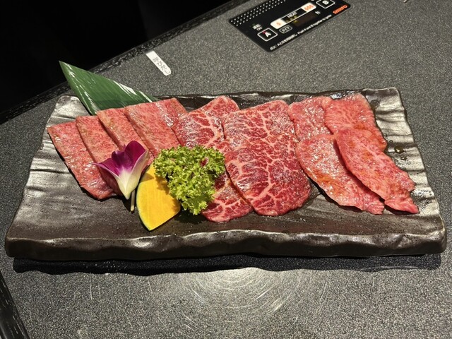 上タン/上赤身/ロース/カルビ/ミスジの5種。お肉の階段上ります!