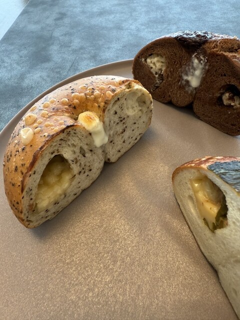 土曜12:30頃に訪問。先客はおらず、スムーズに購入できた。 【購入品】 ・カフェモカクリーム(400円) 購入日に冷凍保存し、数日後に常温で解凍していただいた。 厚みがあり、ずしっと重さのあるベーグルで、弾力というより密度の高さを感じる噛み応えのある食感。 中にはカフェモカク... 詳細を見る