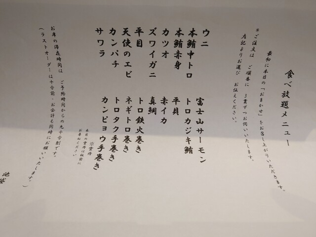 順番にオーダーを聞かれるシステムなのですが、もう少し自分のペースで食事・オーダーしたいなと思いました。途中からお腹が厳しくなってしまった...