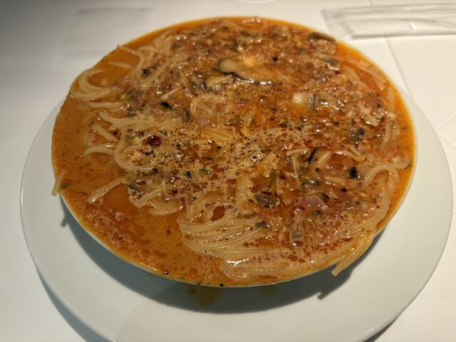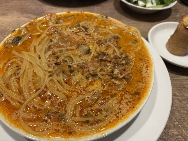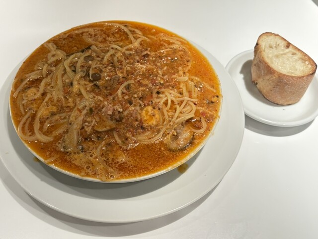 絶望のスパゲッティ 無料大盛り ランチセット (パスタ、サラダ、バゲット、シャーベット) 1780円 セットドリンク 200円 バゲットをガーリックトーストに変更 110円 渋谷で有名なこちらのお店 渋谷店ではなく先に池袋店に来てしまいました ランチ利用 知人から美味し... 詳細を見る