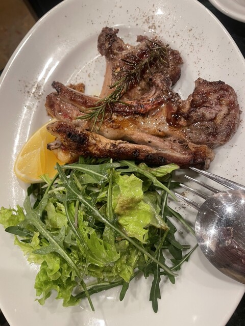 豪快肉盛りコース→前菜、パスタの後のメインディッシュは肉好きにはたまらない3〜4種類の焼いたお肉を楽しめる全8品8品