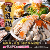 【痛風鍋&厳選日本酒飲み放題コース】海の幸満載・痛風鍋に舌鼓!2時間飲み放題付6,980円7品
