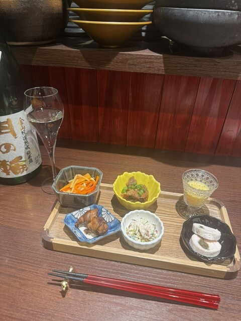 店内は落ち着いた和モダンな雰囲気で、間接照明が優しく灯り、まるで上質な“大人の隠れ家”のような空間でした。席の間隔も広めで周りを気にせず過ごせるため、ゆっくり会話を楽しみながら食事ができるのも魅力の一...